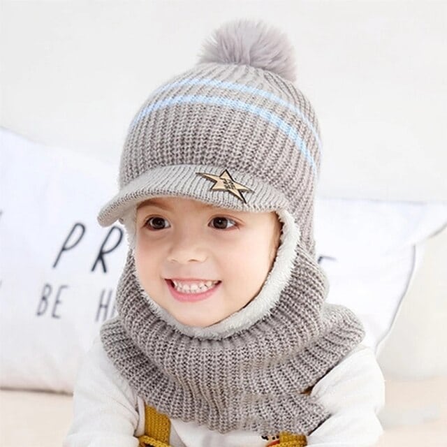 Winterhaube mit Bommelmütze für Mädchen