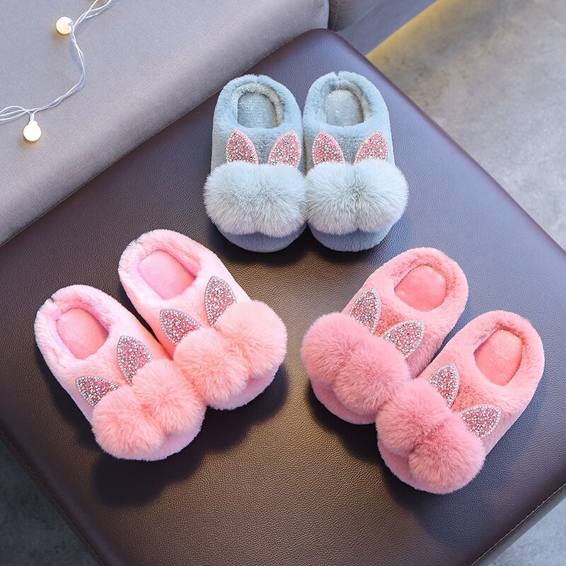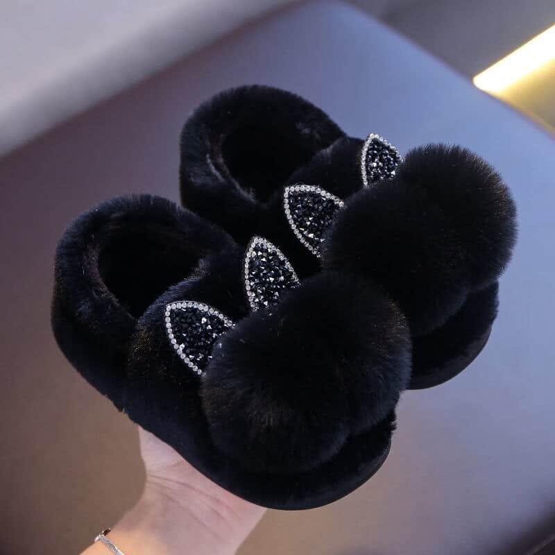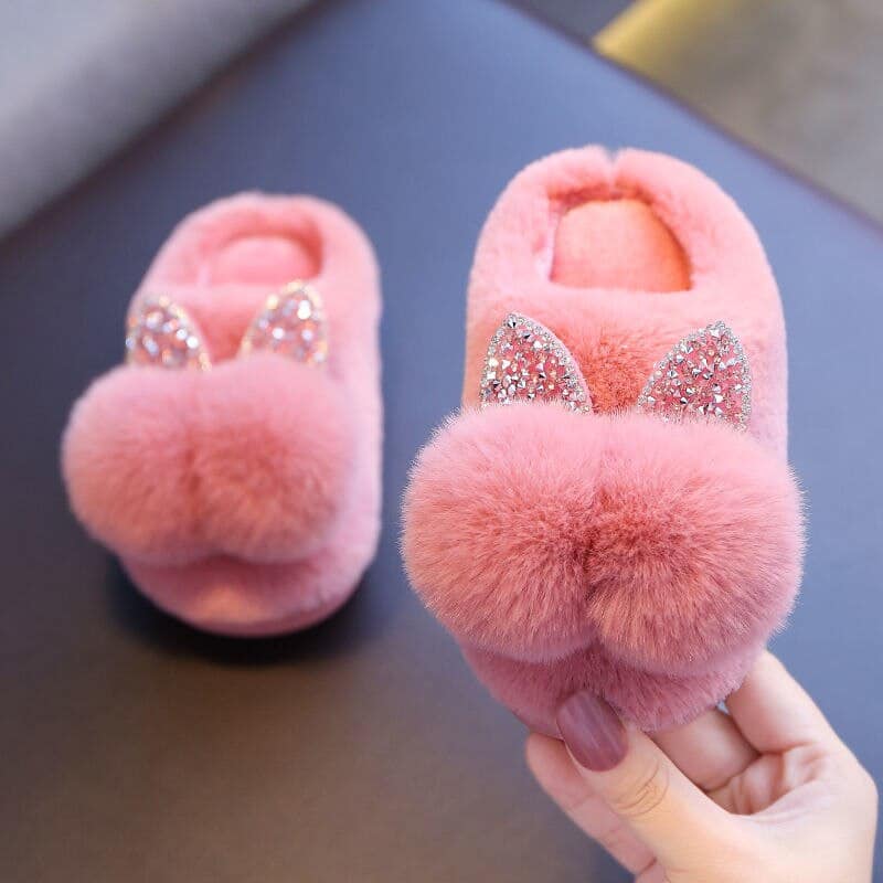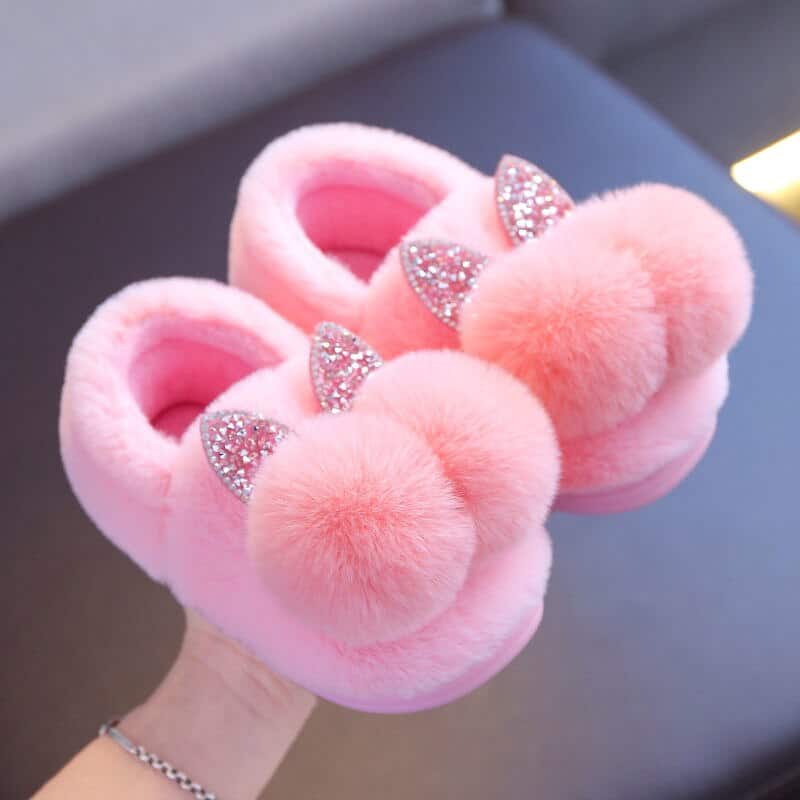 Hausschuhe für Mädchen mit doppelten Pompons