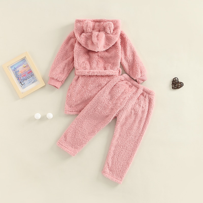 Fleece-Pyjama mit Kapuze, Bärenohren und Gürtel für Mädchen