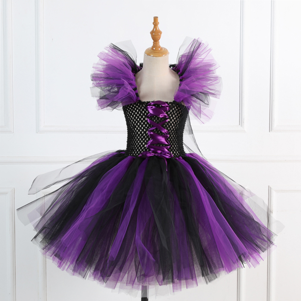 Schwarzes und violettes Hexenkostüm für Mädchen
