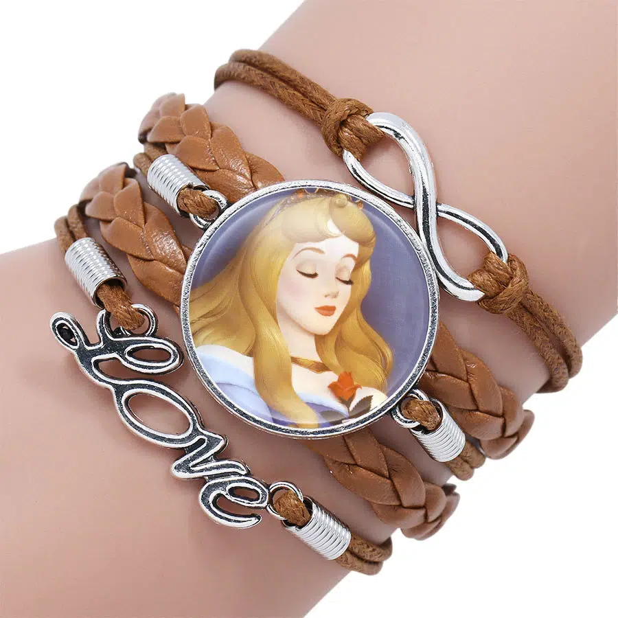 Braunes geflochtenes Armband Disney Dornröschen schlafend Aurora