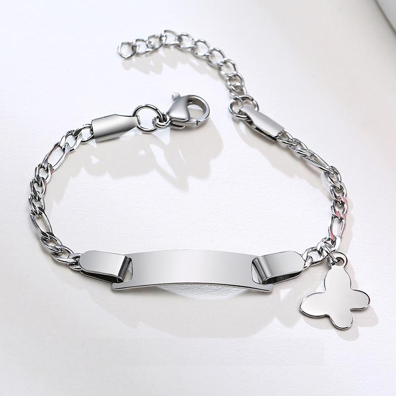 Personalisierbares Armband mit Schmetterlingsdetail aus rostfreiem Stahl für Mädchen